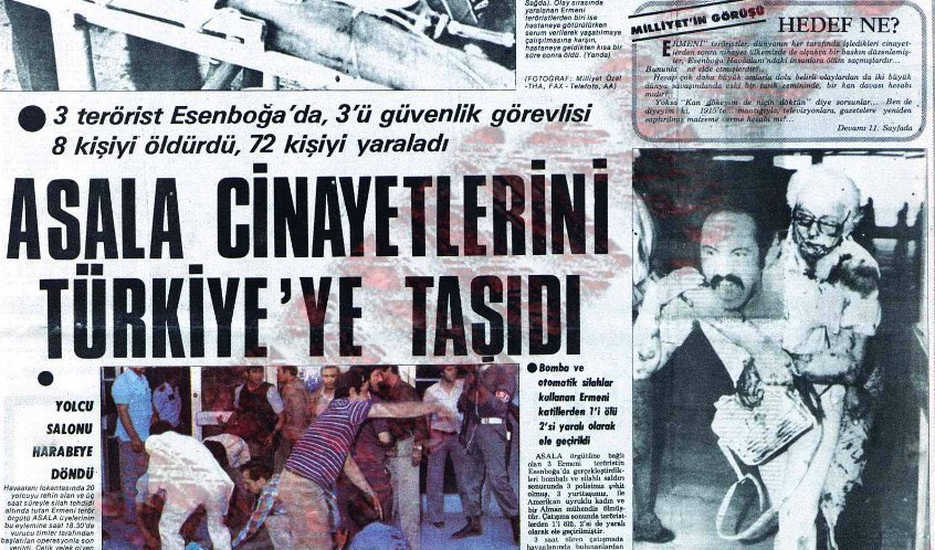 Takvimler 1982’nin 7 Ağustos’unu gösterdiğinde ASALA teröristleri Türkiye’deki ilk eylemini gerçekleştirdi. Hedefleri Ankara’nın en işlek noktalarından biri olan Esenboğa Havalimanıydı. ASALA teröristleri Zohrab Sarkisyan ve Levon Ekmekçiyan bir havayolu şirketinin check-in bölgesindeki kalabalığın ortasında bomba patlatıp yolcular ve kontrol memurlarının üzerine hafif makineli tüfek ile ateş etmeye başladılar. Havalimanında birden kıyamet koptu. İnsanlar dehşet içinde sağ sola kaçıyorlardı.