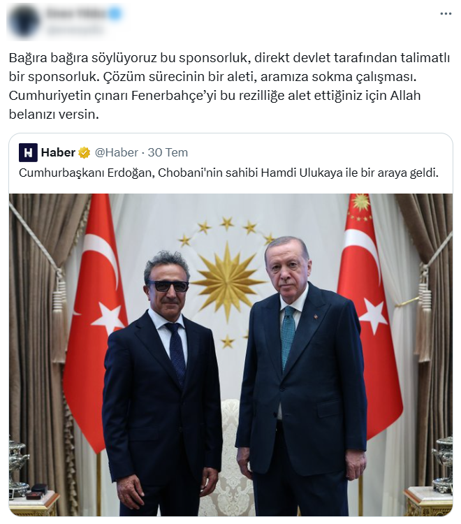 Bağıra bağıra söylüyoruz bu sponsorluk, direkt devlet tarafından talimatlı bir sponsorluk. Çözüm sürecinin bir aleti, aramıza sokma çalışması. Cumhuriyetin çınarı Fenerbahçe’yi bu rezilliğe alet ettiğiniz için Allah belanızı versin.